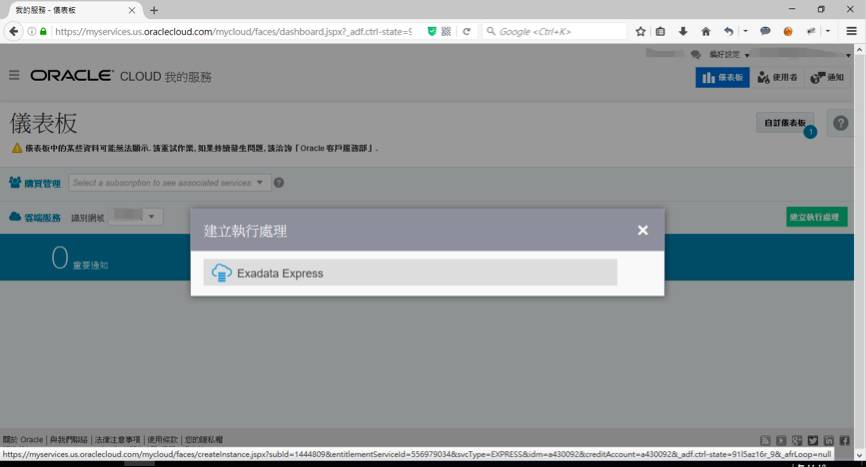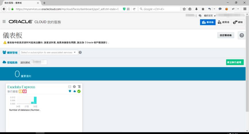 点击仪表盘,回到初始界面,发现已经有个Exadata Express服务了
