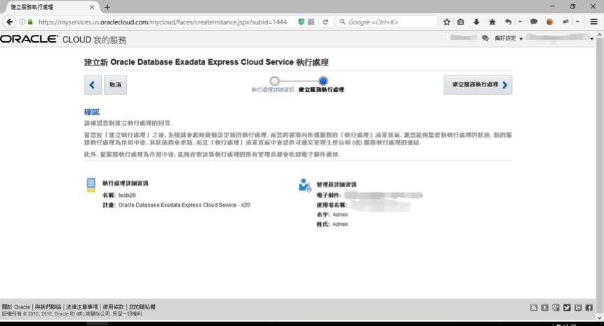 在这一步里就是确认信息,点击创建服务实例,就可以完成创建了。完全不用安装软件和dbca建库,创建数据库就2个步骤,非常简单。创建时间也非常快,很快就返回了,这样我们的实例就建完成了。这个过程非常简单,比我们自已准备调试硬件、安装操作系统、安装数据库软件,建库等一系列事情那是快了去了。