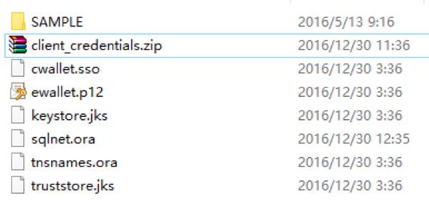 下载得到个client_credentials.zip压缩包,把这个压缩包复制到$ORACLE_HOME/network/admin目录,然后解压,得到以下6个文件。