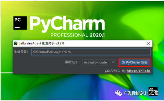 在弹出的JetbrainsAgent Helper对话框中,选择激活方式,点击安装按钮