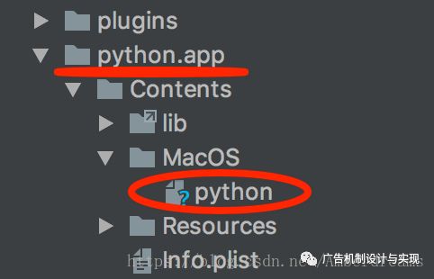 选择 python.app文件夹中的 Mac OS 文件夹,并打开,选中 python,并点击右下角的ok