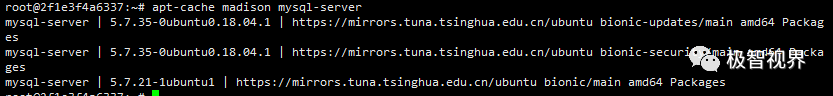 # 查询一下看用 apt 能直接安装什么版本的 mysql