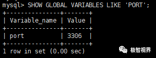 mysql> SHOW GLOBAL VARIABLES LIKE 'PORT';