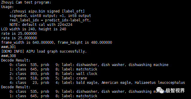大功告成后会生成 zhouyi_demo,将其和 3.1 生成的 aipu.bin 拷贝到板子上。