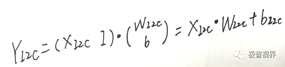 在 XI2c 矩阵添加系数矩阵 I,I 矩阵为 9 x 1 矩阵且其元素全为 1;在 WI2c 矩阵中添加偏置矩阵 b,其中 b = [0 1]。则计算公式为: