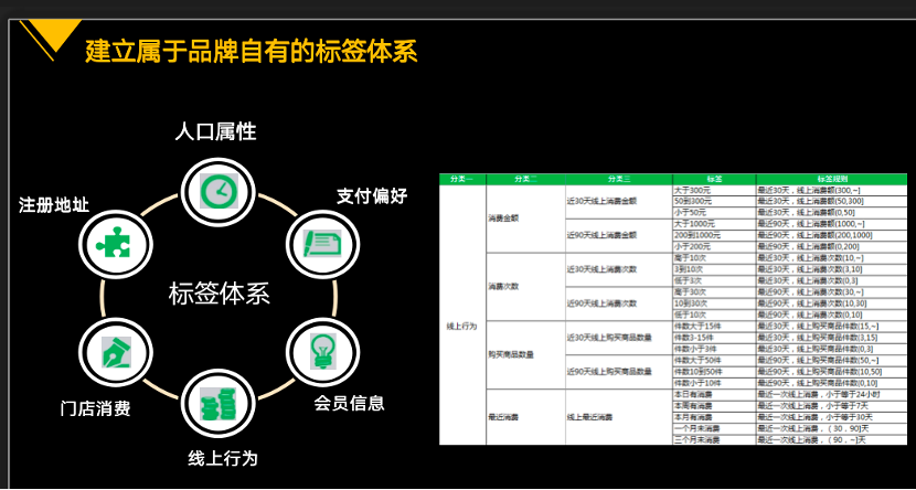 规则标签:进行数据加工处理后的统计结果标签,是相对客观的,静态的,如:最近一次登录APP的时间,最近加购产品数量,试乘试驾的次数等。