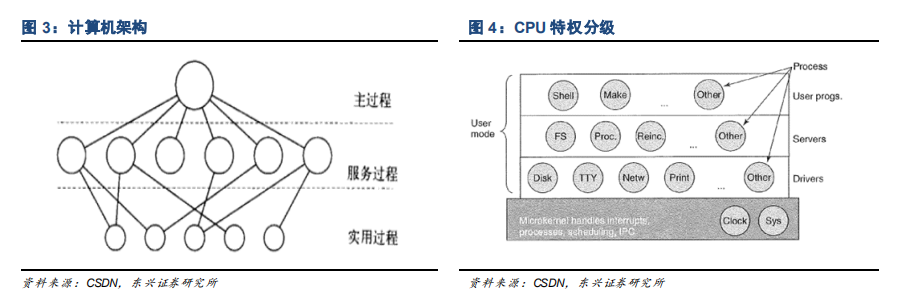 单一内核结构全部操作系统在内核态中以单一程序的方式运行;层次结构由单体系统理论优化而来;微内核结构将操作系统划分成小的、良好定义的模块,只有其中一个模块–微内核–运行在内核态上,其余的模块,由于功能相对弱些,则作为普通用户进程运行,实现操作系统的高可靠性。