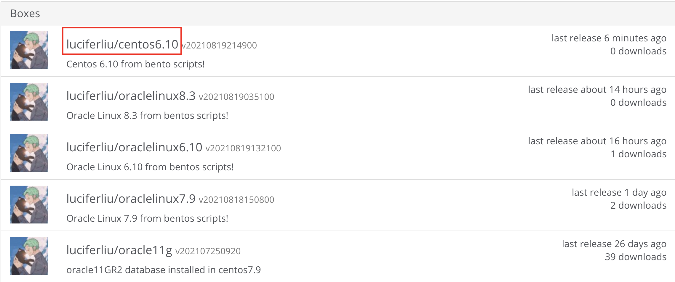 box镜像下载地址:luciferliu/centos6.10