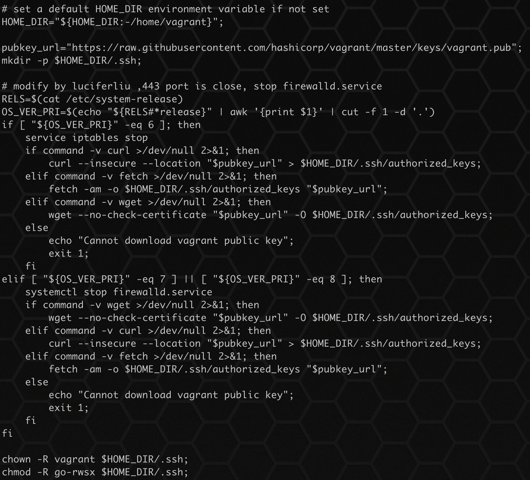 pubkey_url="https://raw.githubusercontent.com/hashicorp/vagrant/master/keys/vagrant.pub";