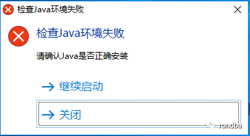 如果没有安装java,或者没有配置java环境变量,会提示“检查Java环境失败”。
