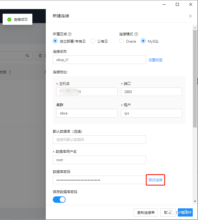 租户名称:输入连接的租户名,如sys,或指定其它租户