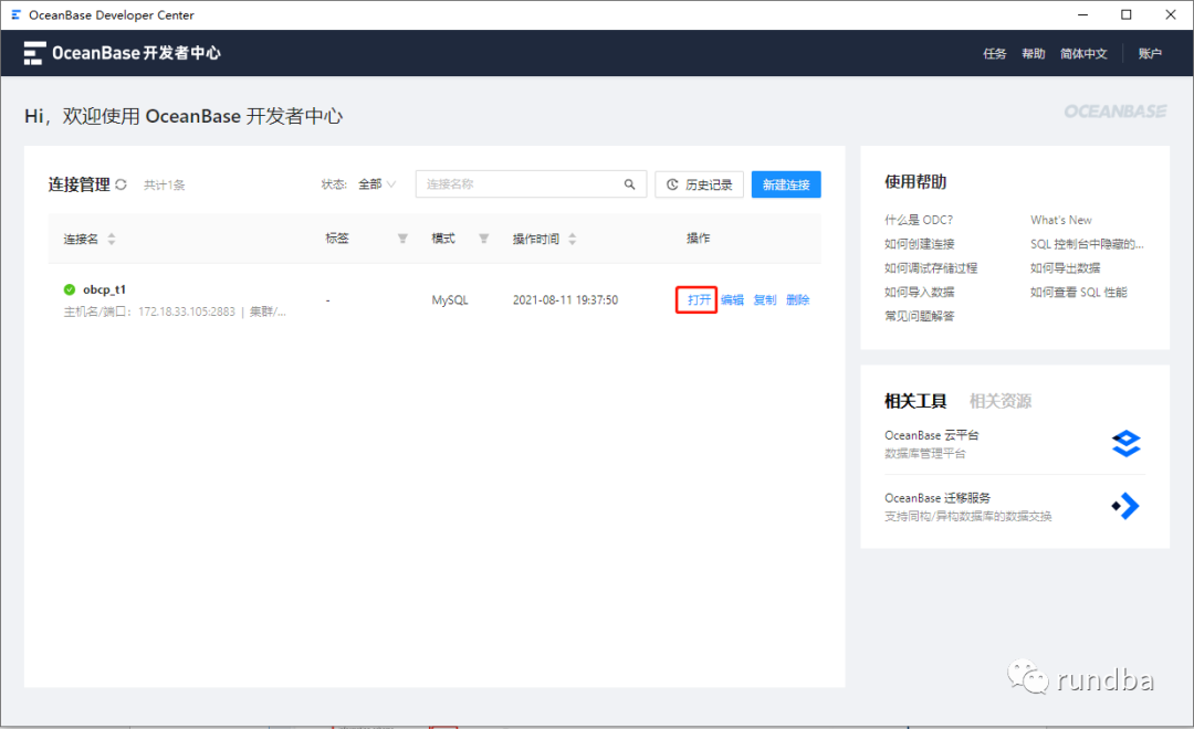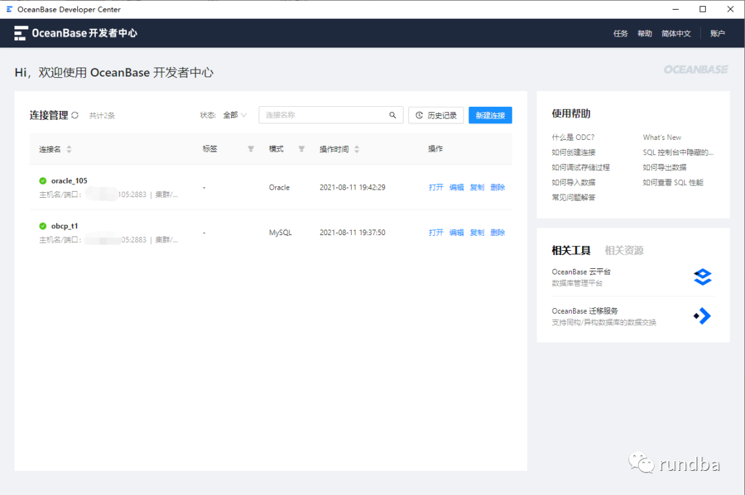 ODC(OceanBase Developer Center)--OceanBase开发者中心,类似于类似于db2的db2cc/Data Studio,oracle的sql developer,sql server的SMSS,是官方为OceanBase数据库量身打造的企业级数据库开发平台。