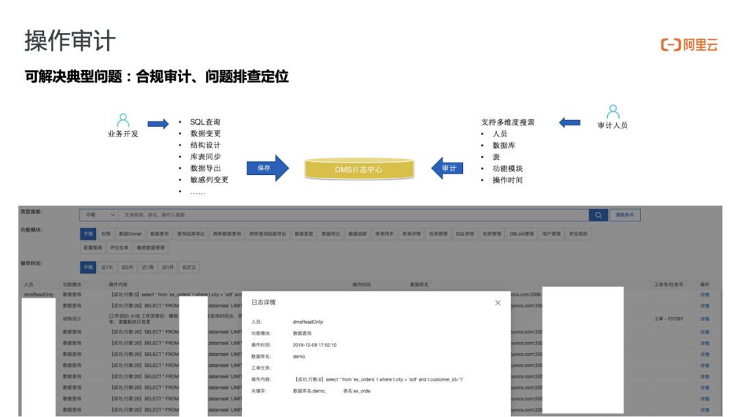 前面我们已经介绍了细粒度权限、SQL请求、敏感数据、安全规则这几个数据访问安全解决方案,最后我们再来看下作为访问安全最后一环的操作审计。在合规面前,所有行为要有据可循,有据可依。