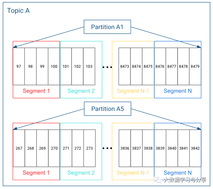 topic的一个partition是一个逻辑上的数组,由多个segment组成,如下图所示: