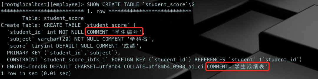 ) ENGINE=InnoDB COMMENT='学生成绩表';