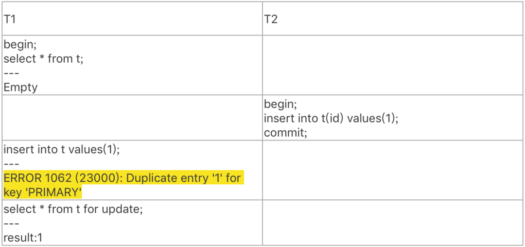 网络上有一些文章说 MySQL repeatable-read 是会出现幻读的,复现用例如下:
