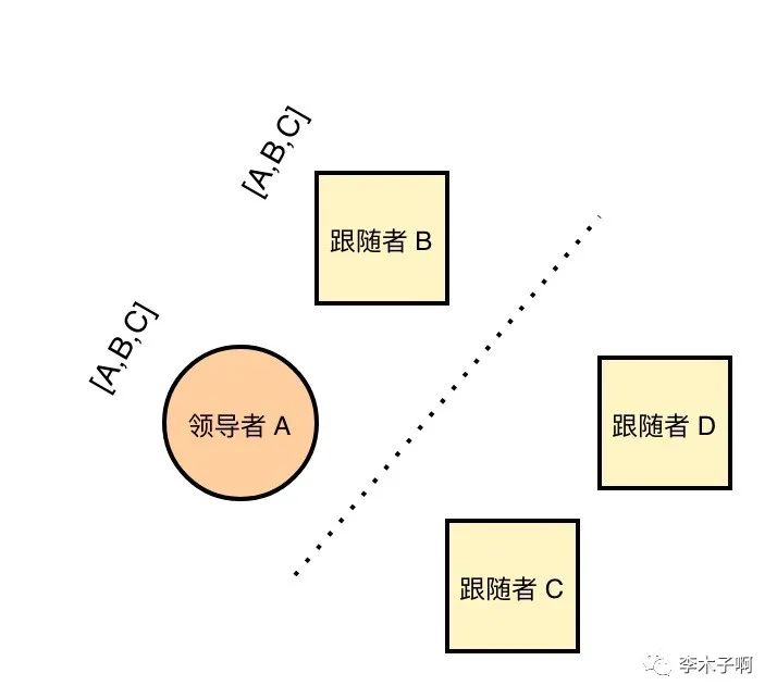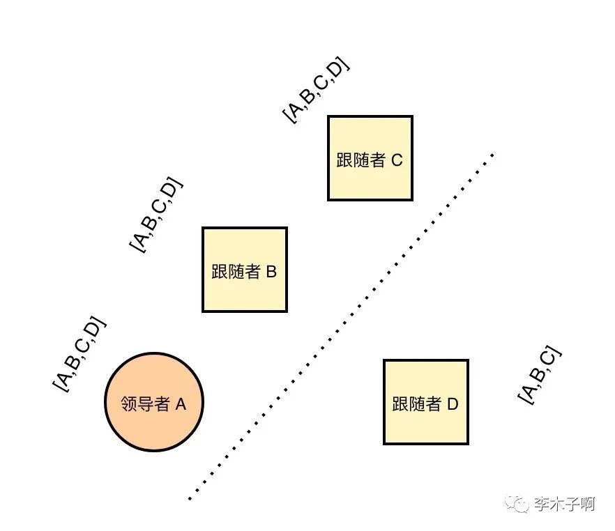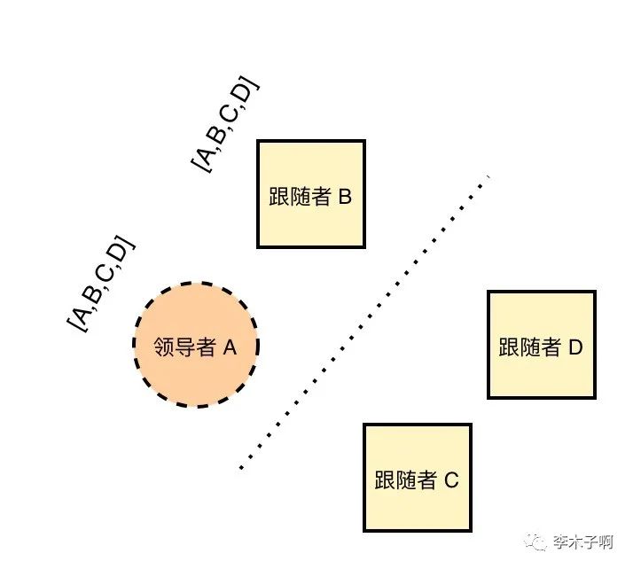 •节点 D 向领导者申请加入集群;•领导者 A 向新节点 D 同步数据;•领导者 A 将新配置 [A、B、C、D] 作为一个日志项,复制到配置中的所有节点,然后应用新的配置项(这里需要注意的是,每个节点接收到新的配置项肯定是有时差的);•如果新的日志项应用成功(被大多数节点复制成功),那么新节点添加成功。