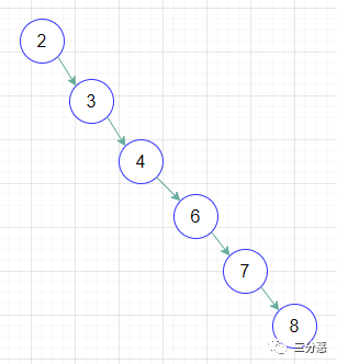 同样是2,3,4,6,7,8这六个数字,如果我们插入的数据刚好是有序的,那它就变成这样👇