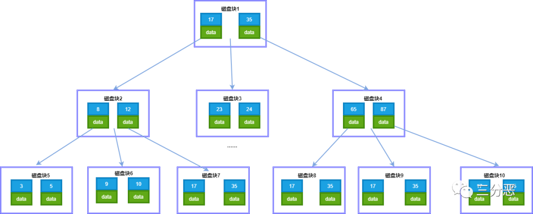 所以如果每个节点存储的数据太少,从索引中找到我们需要的数据,就要访问更多的节点,意味着跟磁盘交互次数就会过多。