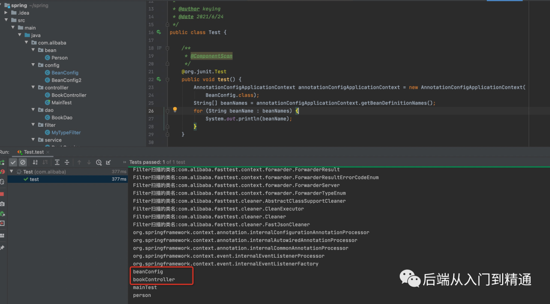 /*** @ComponentScan*/@org.junit.Testpublic void test() {AnnotationConfigApplicationContext annotationConfigApplicationContext = new AnnotationConfigApplicationContext(BeanConfig.class);String[] beanNames = annotationConfigApplicationContext.getBeanDefinitionNames();for (String beanName : beanNames) {System.out.println(beanName);}}