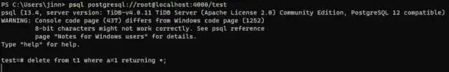 最后一步,我们尝试一下windows的psql client链接wsl下的tidb4pg,并能捕捉到sql query请求。