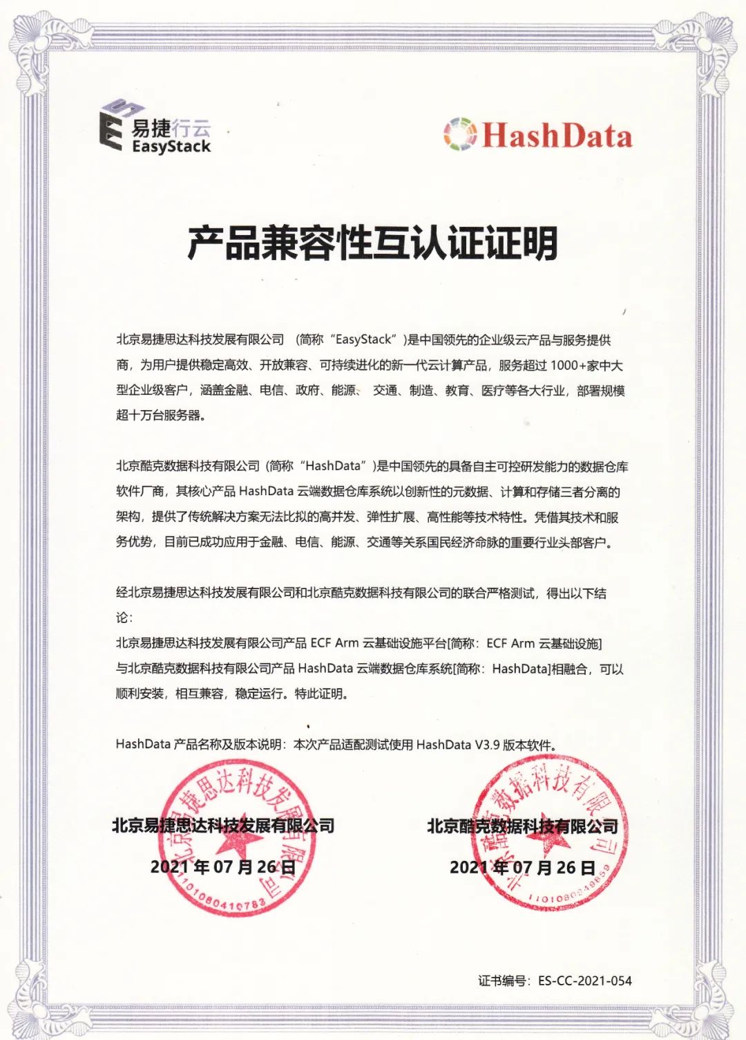 在此之前,HashData云端数据仓库系统已与华为云共同实现了鲲鹏芯片的适配 ( HashData再添华为新认证,加入IBM生态大家庭!)。此次与EasyStack ECF Arm 云基础设施平台完成的兼容性互认证,HashData进一步表现出与国产软硬件适配的良好成熟度、开放性以及兼容性,这得益于一直以来强大的自主可控、研发创新属性。未来,HashData将与更多国产芯片、国产操作系统完成适配,继续加强国产适配能力、扩大国产适配范围,共同为用户提供更优质、更有价值的解决方案,助力我国自主软硬件生态建设,促进信息产业繁荣发展。