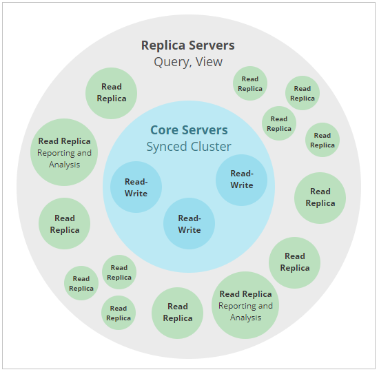 2). 副本服务器(Read Replicas):副本服务器的主要职责是扩展图数据负载能力。作用类似于Core Server保护的数据的缓存,但它们不是简单的键值缓存,同时它是功能齐全的Neo4j数据库,能够完成任意(只读)图数据查询和过程。只读副本是通过事务日志传送从Core Servers异步复制的。它定期轮询核心服务器以查找自上次轮询以来已处理的任何新事务,并且核心服务器会将这些事务发送到只读副本。可以从相对较少的Core Server中馈送许多只读副本数据,从而使查询工作量大为增加,从而扩大规模。但是,与核心服务器不同,只读副本不参与有关群集拓扑的决策。
