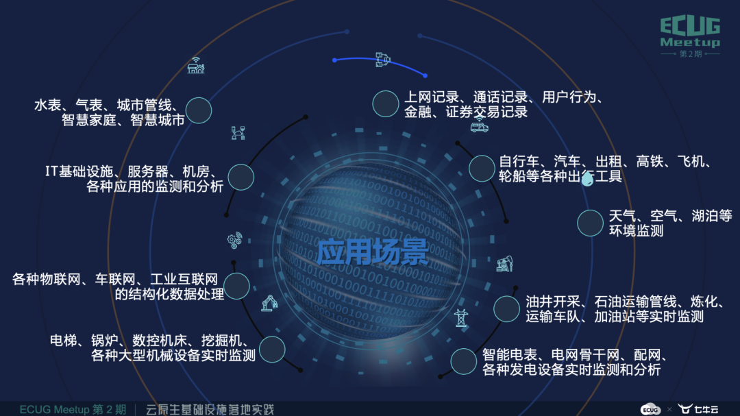 因为物联网,首先是跟工业相关的,比如水表、气表、管线监测、服务基础设施、DevOps、车联网、物联网,等等,这是 TDengine 目前已经涵盖了服务的应用场景。