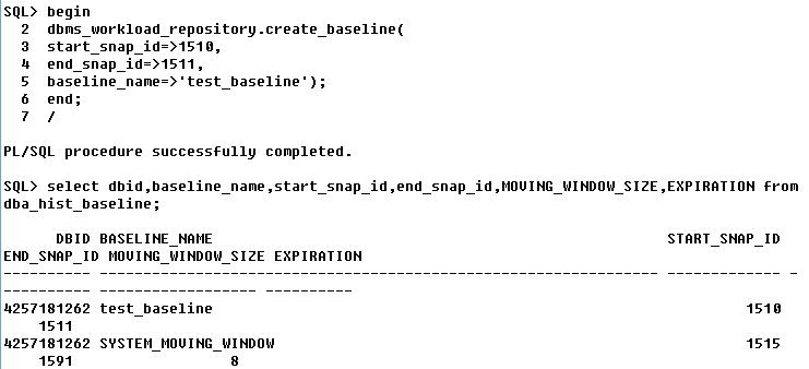 基线在 Oracle 10g 中就出现了,而在 Oracle Database 11g 进一步增强了自动工作量资料档案库基线: