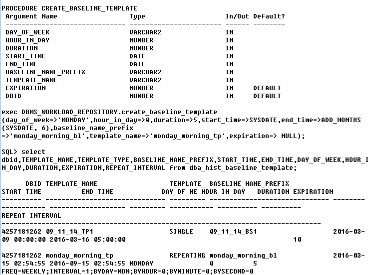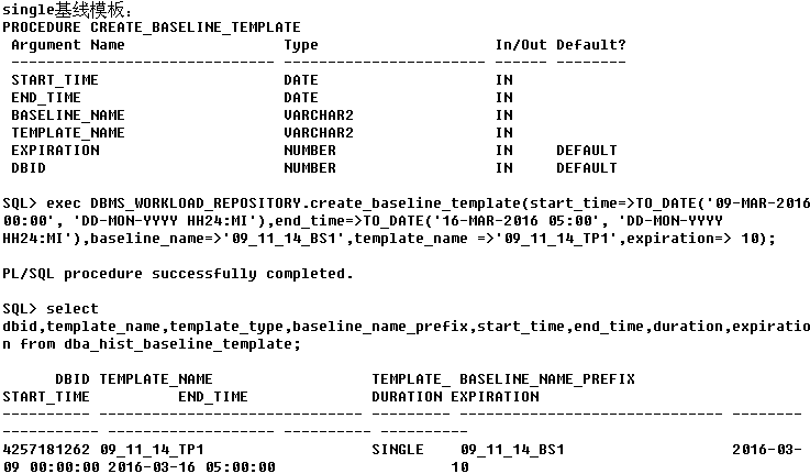 Baseline template:您可以使用 baseline template 创建将来某个连续时间段的baseline,oracle 中有两种 baseline 模板分别是 single 和 repeating;
