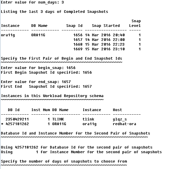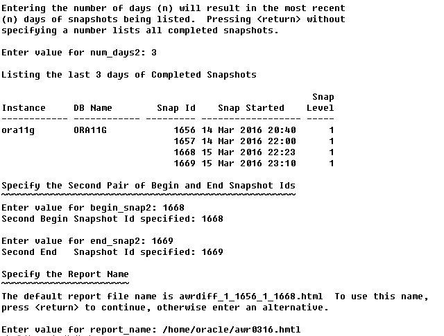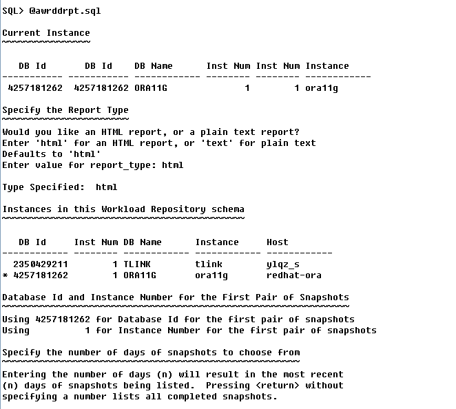接下来使用 awrddrpt.sql 脚本来生成两个 AWR 的对比数据: