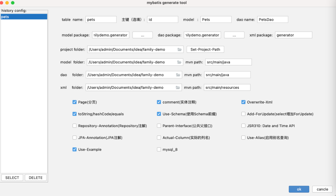 在familydemo文件下创建mapper文件夹,并修改FamilyDemoApplication中@MapperScan的扫描路径: