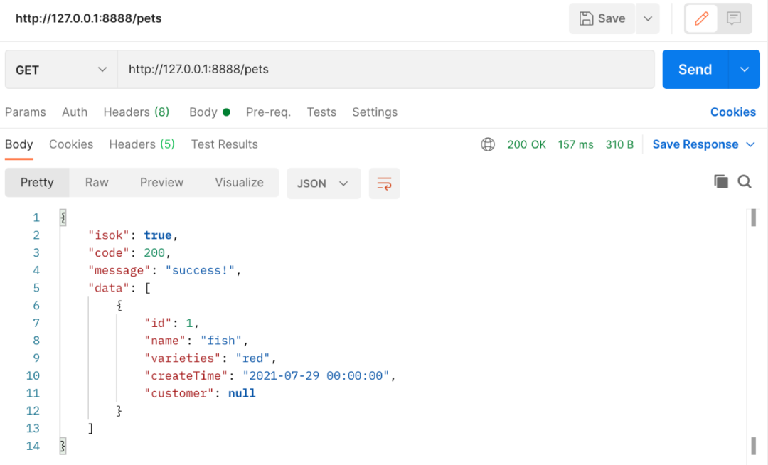 执行代码,使用postman进行测试,增删改查功能全部正常。
