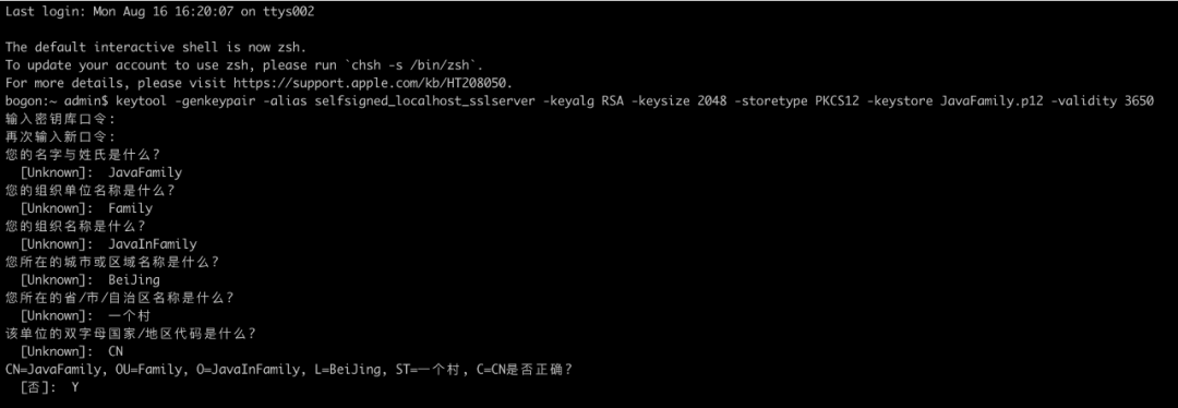 keytool -genkeypair -alias selfsigned_localhost_sslserver -keyalg RSA -keysize 2048 -storetype PKCS12 -keystore JavaFamily.p12 -validity 3650