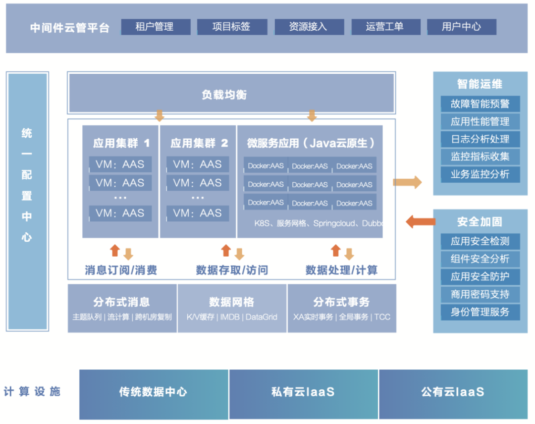 金蝶AAS V10支持云环境下的部署,包括IaaS平台下的云主机,以及PaaS平台下的容器化部署,支持混合云订阅模式,具备很强的适应性和扩展性。金蝶AAS V10提供完整的中间件“上云”解决方案,包括统一配置中心、负载均衡、智能运维、安全加固以及分布式新核心等。金蝶AAS V10和云平台集成,为客户业务的云转型提供快速落地的解决方案,打造新一代软件基础云平台。