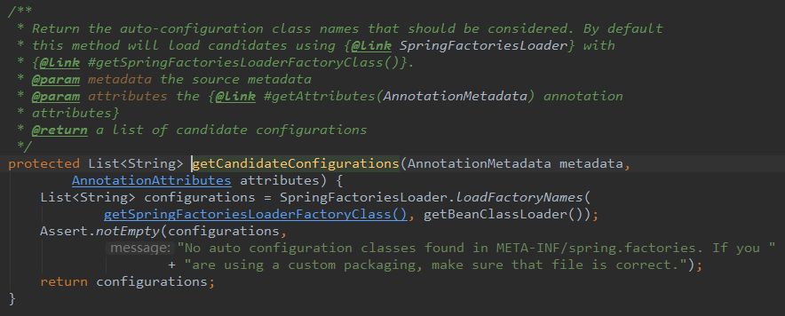 方法,通过方法注释了解到,其返回一个自动配置类的类名列表,方法调用了loadFactoryNames