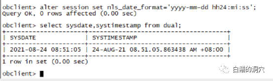 通过alter sesson命令居然成功的设置了时间的显示格式,sysdate,systimestamp,dual这些也是和Oracle并无两样。