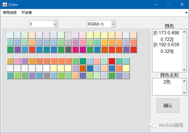 这是自定义窗口的配色界面,点击颜色,其RGB被复制到剪贴板下,粘贴到右边输入框,不同颜色之间打一个回车,别打多了呀~~万一打多了,软件可能显示错误,点击主界面“重置”即可。
