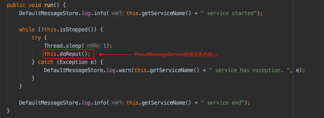 ReputMessageService线程执行任务的时间间隔是1毫秒: