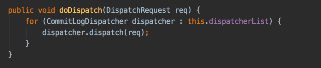 doDispatch方法是通过遍历dispatcherList并根据DispatchRequest来分别构建consumequeue和index