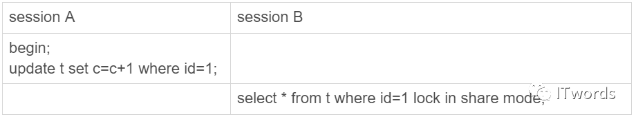 显然,session A启动了事务,占有写锁,还不提交,是导致session B被堵住的原因。
