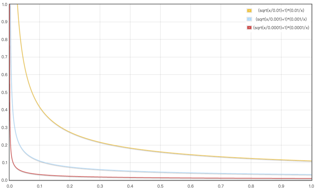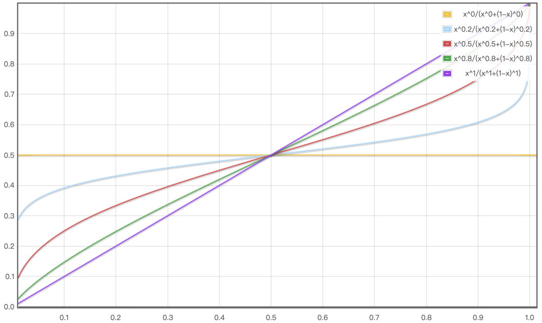 其中,表示点击过的用户占比,为超参数,用于控制热门衰减(越小,衰减越快,通常取到之间,如下图所示)