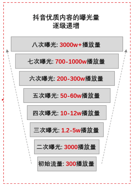 多级流量:由于冷门Item自然流量相对较低,不能准确找到受众用户,通常采用多级流量的方式来逐步扩散用户。如抖音的多级流量扩散