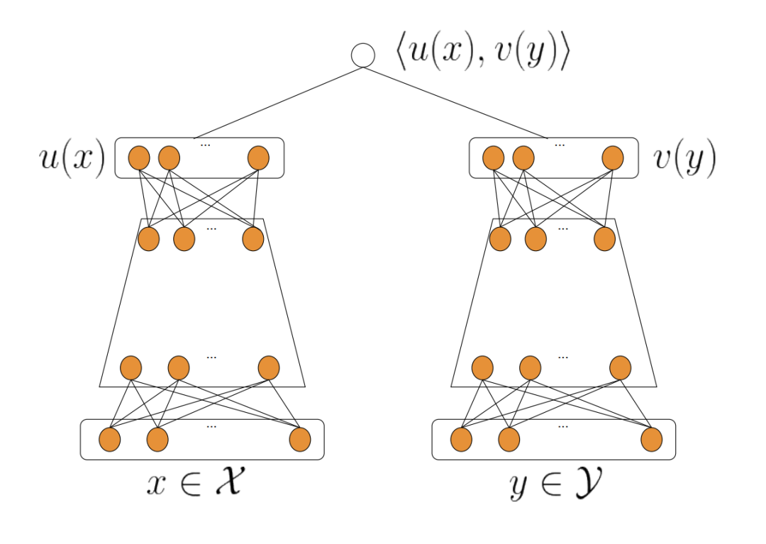 用于表示用户和上下文特征,用于表示Item特征 和分别表示User侧(用户+上下文)和Item的Embedding特征 $$表示User和Item的相似度量(如內积、cosine相似度)等