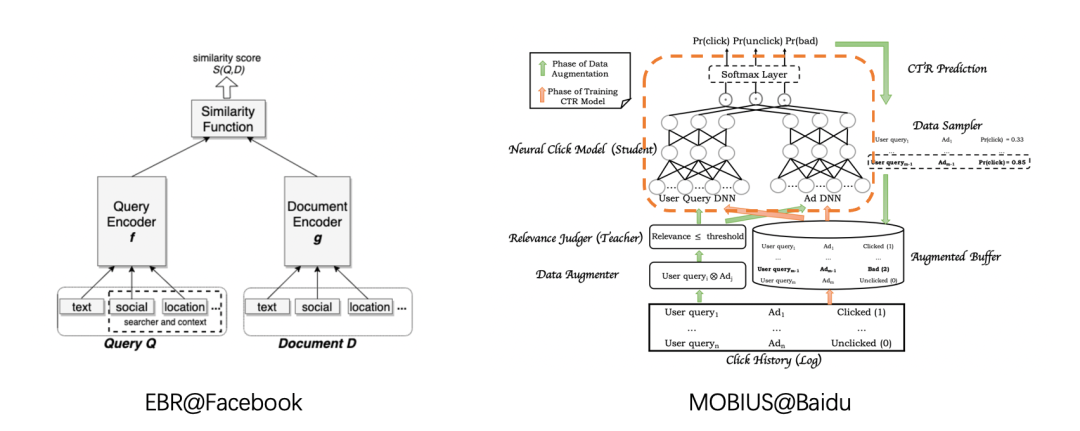 双塔模型只是一种模型架构,具体模型结构可以根据实际应用进行设计(如百度的莫比乌斯,FaceBook的EBR等),实际中User和Item特征也有多种建模方式。在模型训练时的负采样,以及最终是输出是采用cosine、sigmoid还是softmax都需要根据具体业务进行调整。