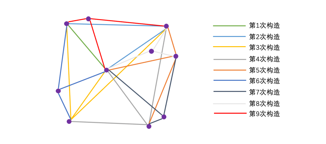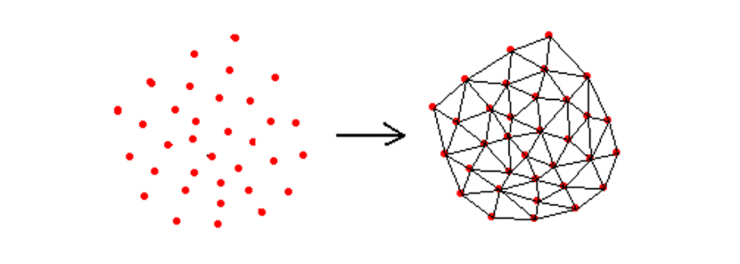 那怎么构造图呢?在图论中德劳内三角剖分(Delaunay Triangulation)算法,可以构造具有最小边的局部互为同质节点small world graph: