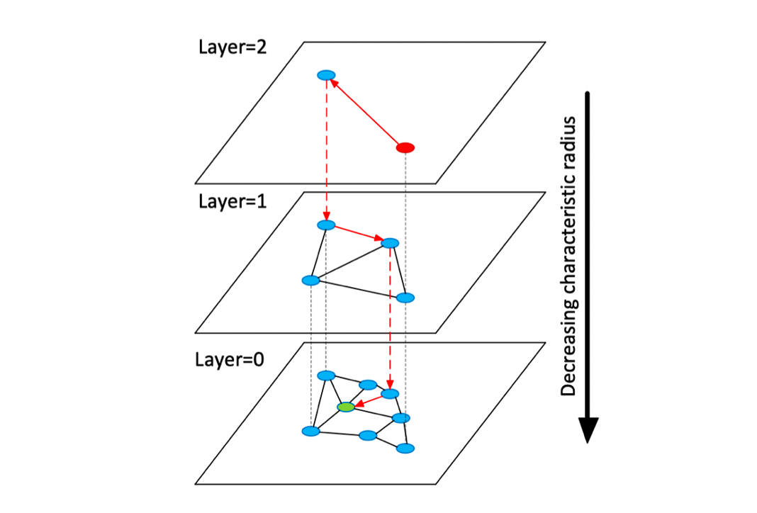 如何构造具有更稳定的small world graph呢?HNSW算法就在NSW基础之上引入了分层图的思想,通过对图进行分层,实现由粗到细的检索。