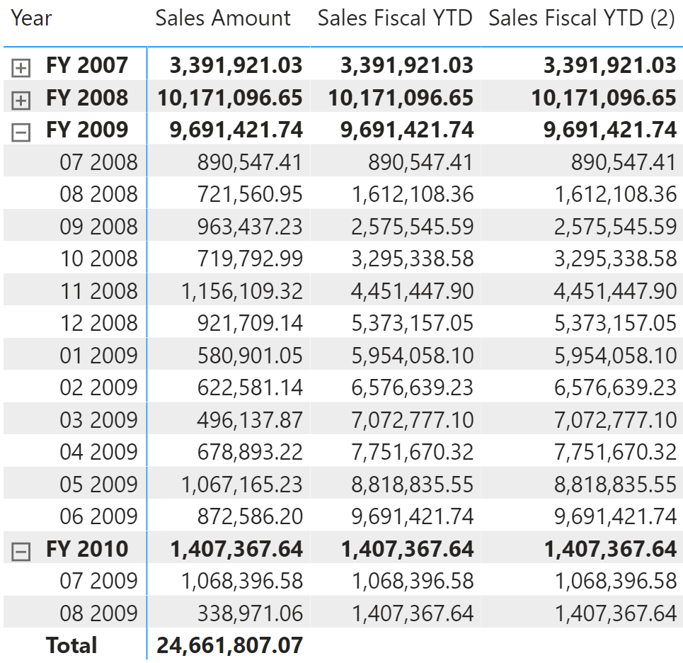 Sales Fiscal YTD (2) :=IF.EAGER ([ShowValueForDates],TOTALYTD ([Sales Amount],'Date'[Date],"6-30"))