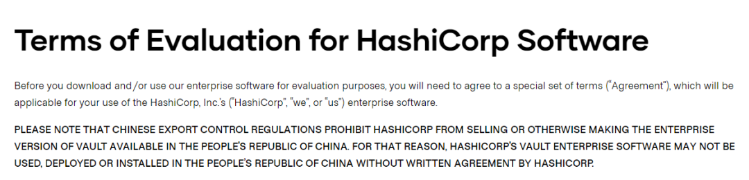 前段时间有新闻报道,国外HashiCorp在官网宣布:不允许中国境内使用、部署和安装该企业旗下的企业版产品和软件。