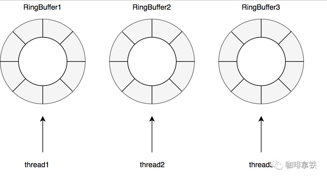 对于读操作比写操作更加频繁,进一步减少竞争,其为每个线程配备了一个RingBuffer: